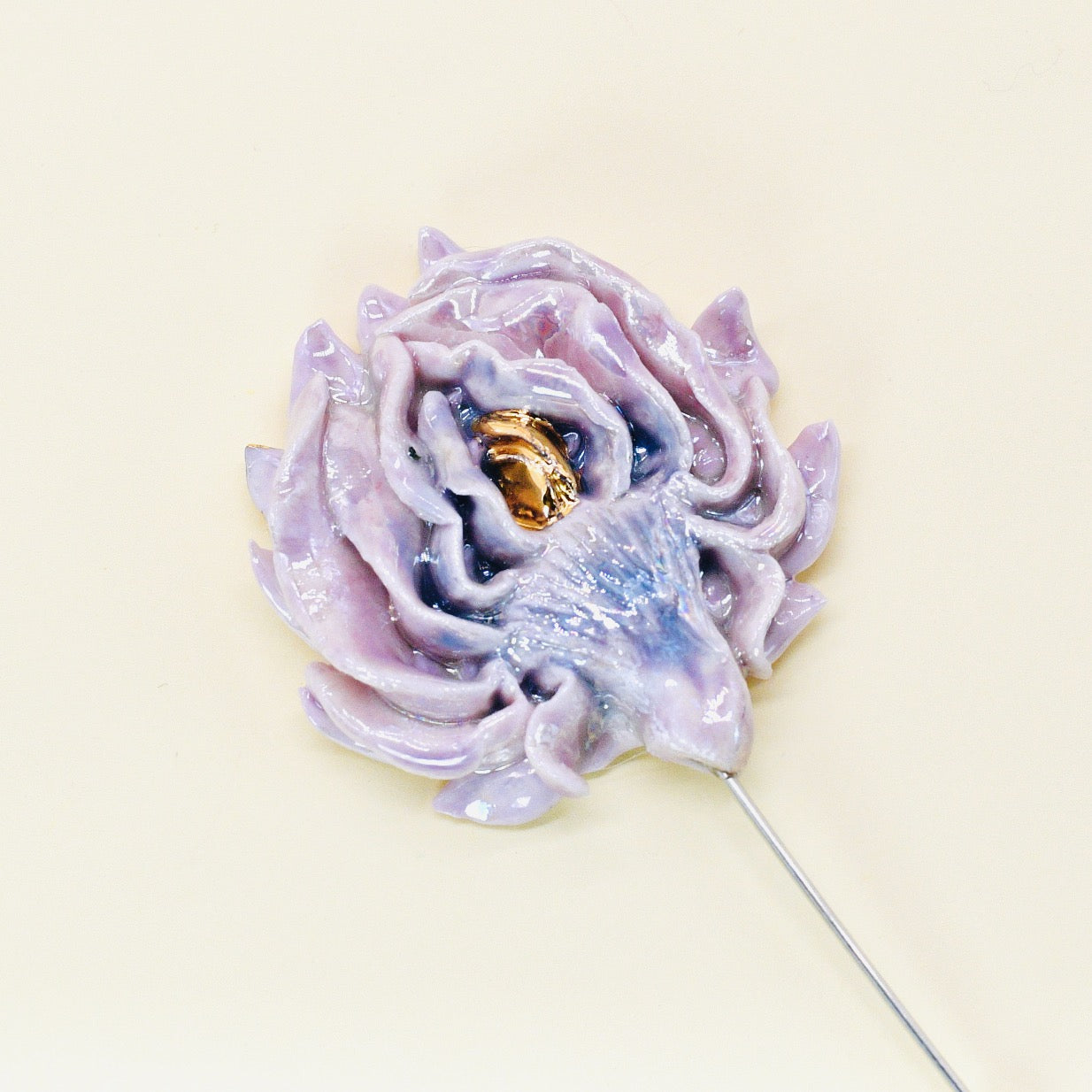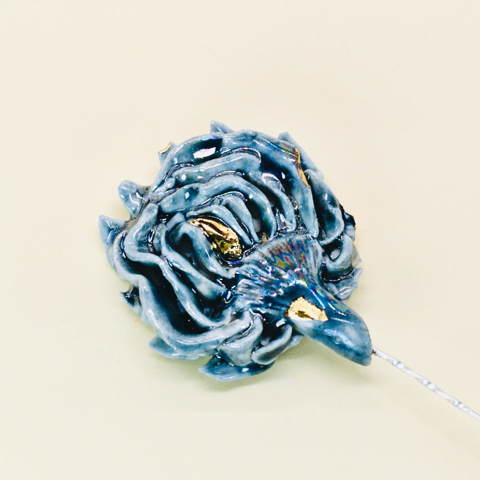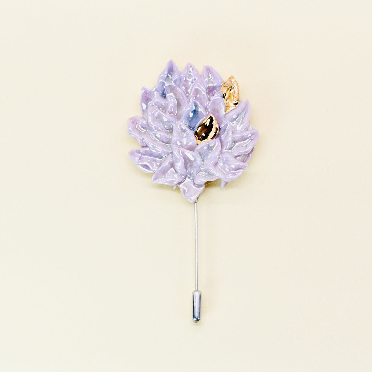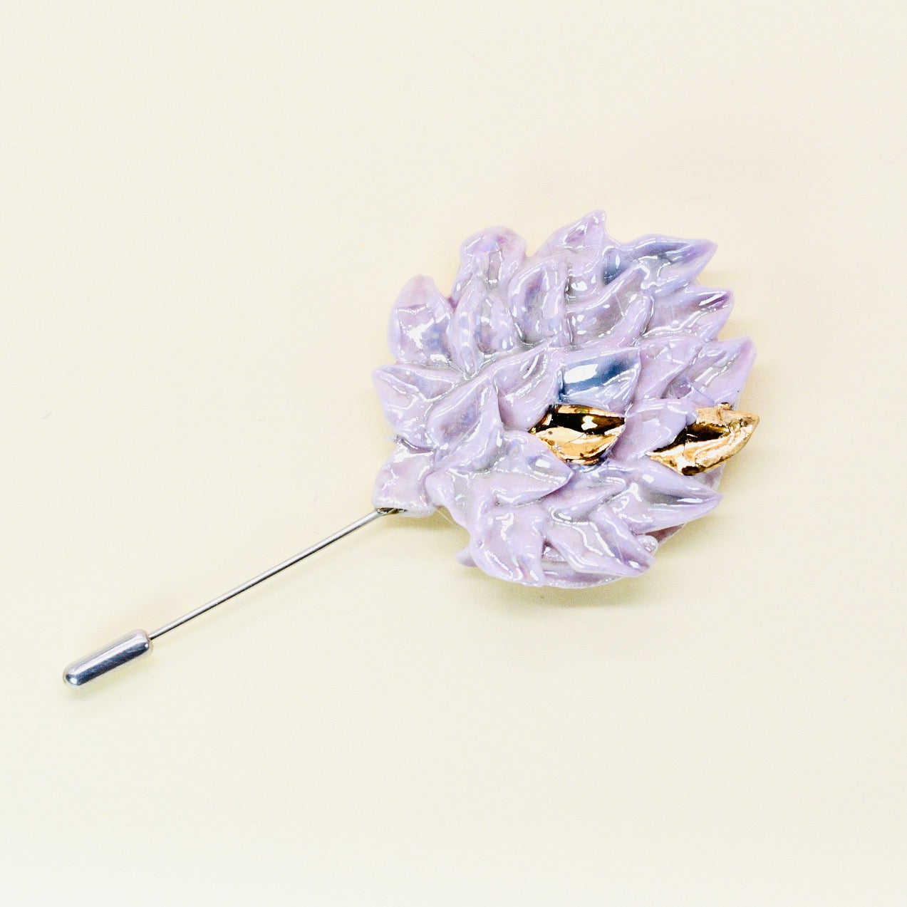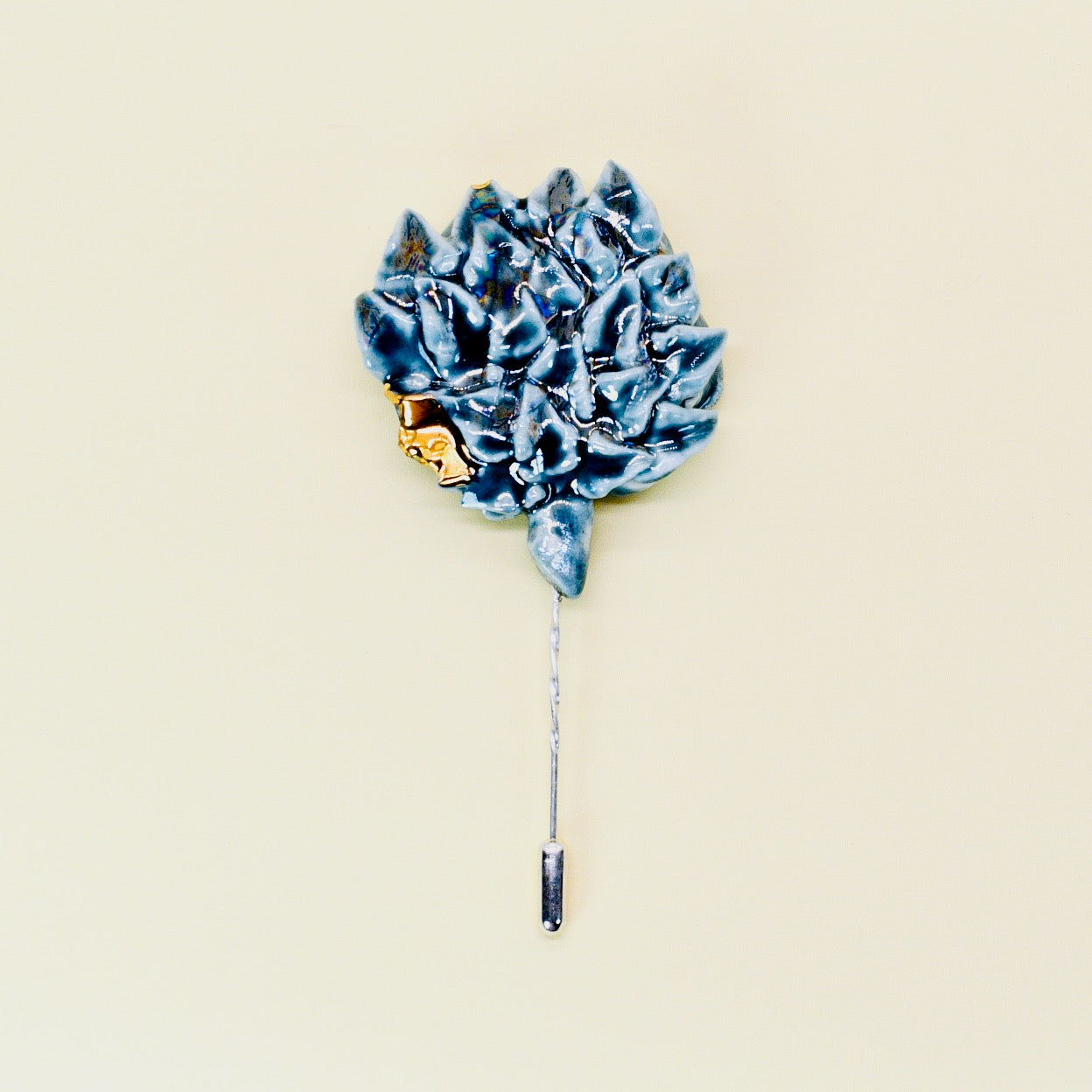 Finished in elegant, organic glazes and embellished with real platinum or gold, this porcelain pin radiates subtle luxury. The clever reversible design allows you to wear it with either the delicate heart of the artichoke or the beautifully detailed leaves facing forward, giving you two unique looks in one piece. Whether pinned to a wool coat, jacket, or styled on a scarf, it brings a touch of artistry and originality to any outfit.