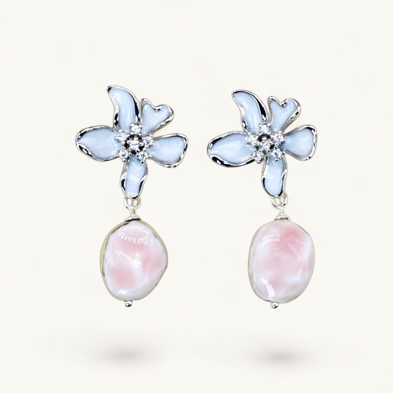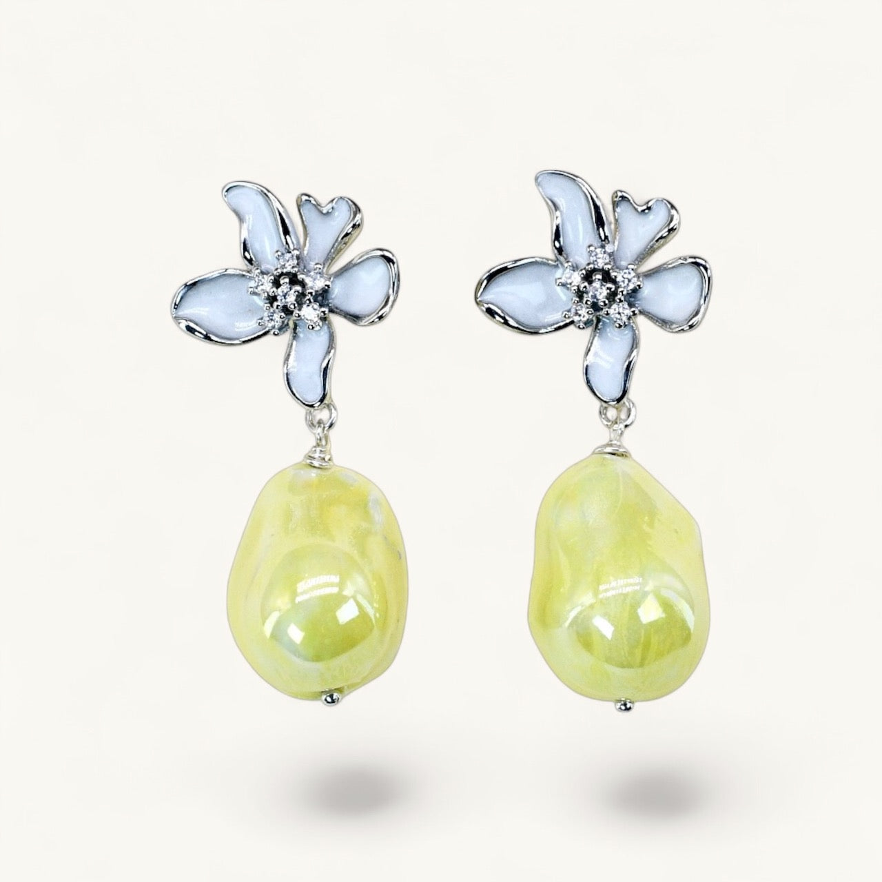 Grace Silver Flower Earrings are a romantic expression of femininity, elegance and refined craftsmanship. Featuring delicate silver-toned flower studs adorned with sparkling crystal centres, these statement drop earrings are finished with luminous handcrafted porcelain charms in a choice of sky blue, blush pink, amber brown or sunny yellow.