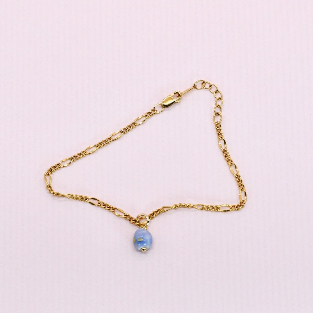 The porcelain charm glides freely along the dainty chain, creating a graceful sense of movement with every gesture. Light, comfortable, and versatile, this bracelet is the perfect accessory for women who appreciate minimalist jewelry with character.